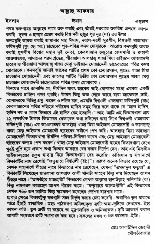 ফতুয়ায়ে বিশ্ব ওলী (রাঃ)