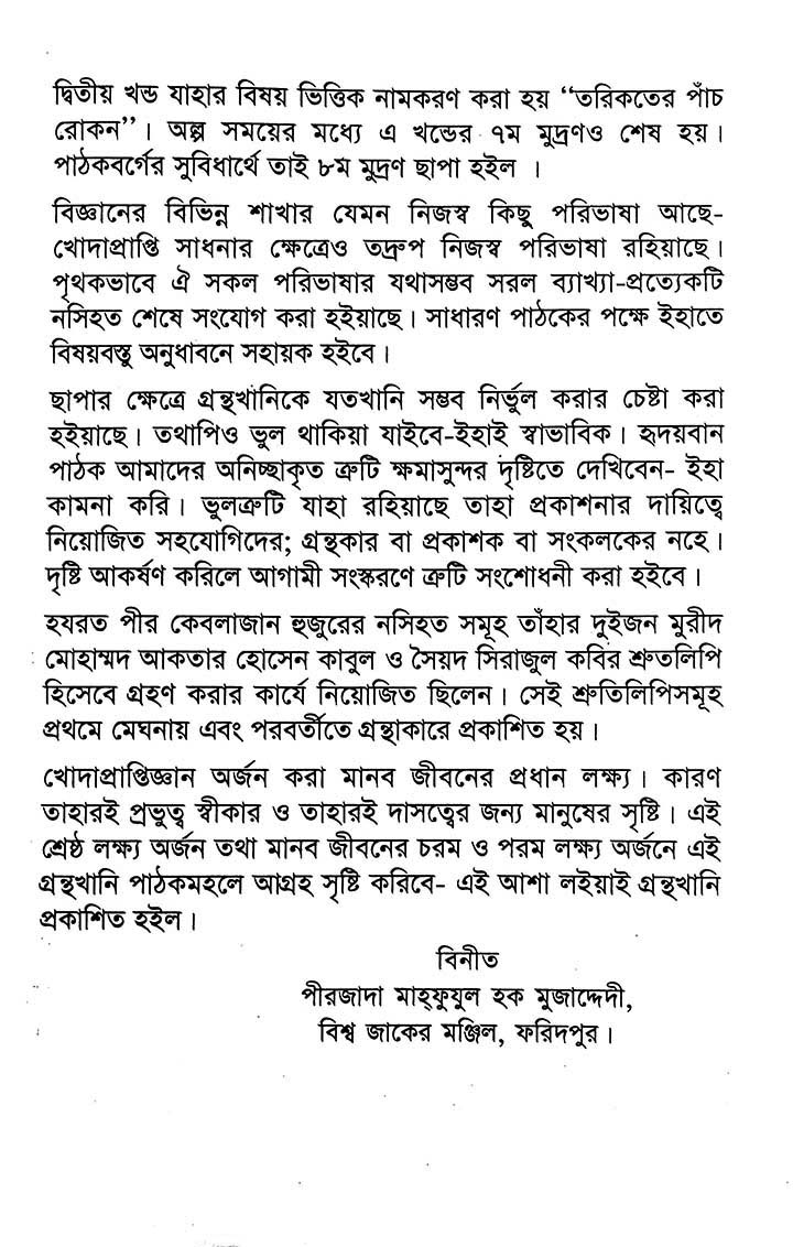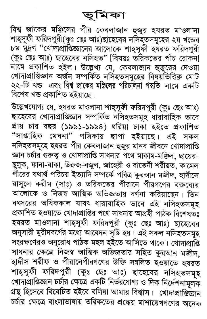 খোদাপ্রাপ্তি জ্ঞানের আলোকে শাহ্সুফী হযরত ফরিদপুরী (কুঃ ছেঃ আঃ) ছাহেবের নসিহত