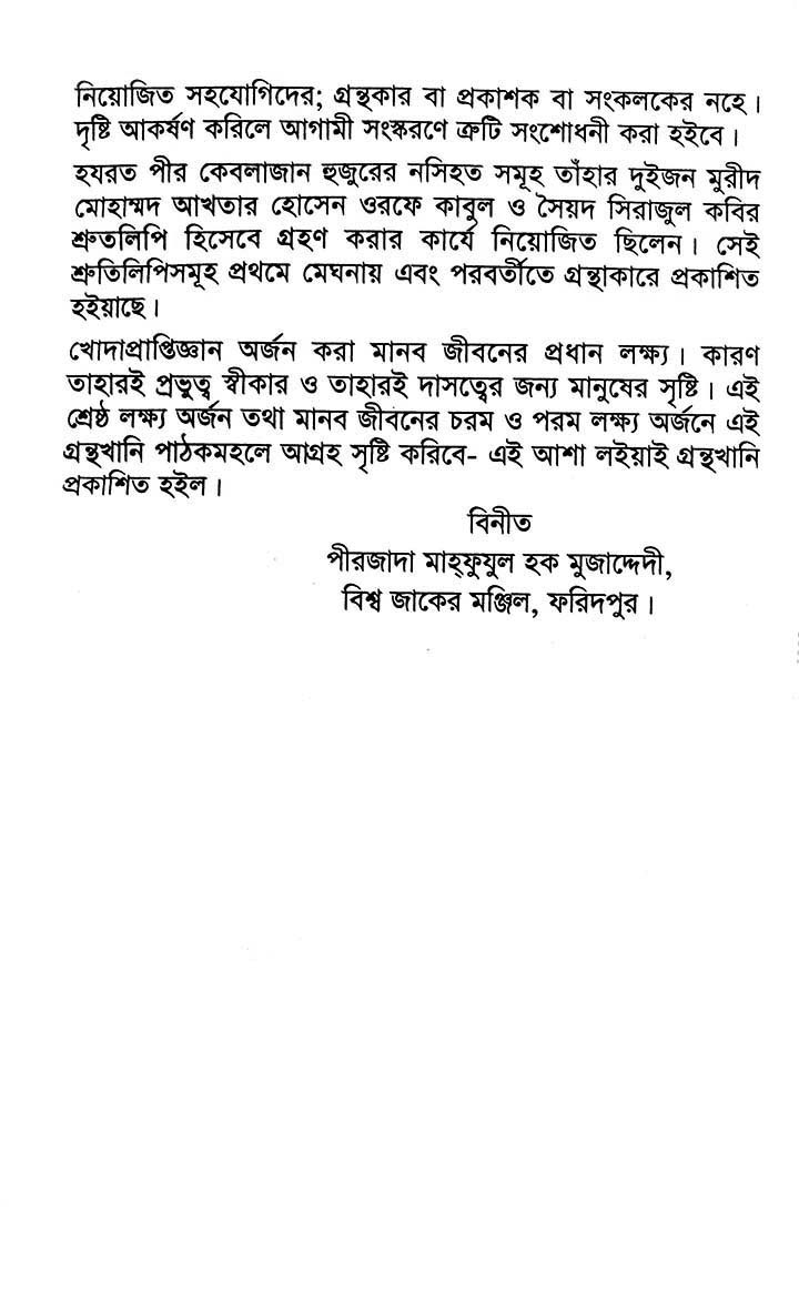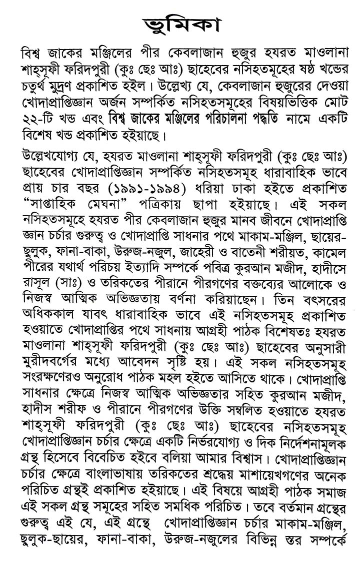 খোদাপ্রাপ্তি জ্ঞানের আলোকে শাহ্সুফী হযরত ফরিদপুরী (কুঃ ছেঃ আঃ) ছাহেবের নসিহত