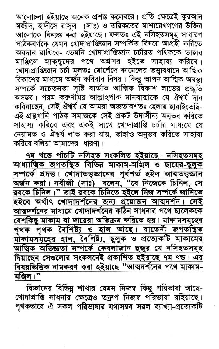 আত্মদর্শনের পথে মাকাম-মঞ্জিল – শাহ্সুফী হযরত ফরিদপুরী (কুঃ ছেঃ আঃ) ছাহেবের নসিহত (৭)