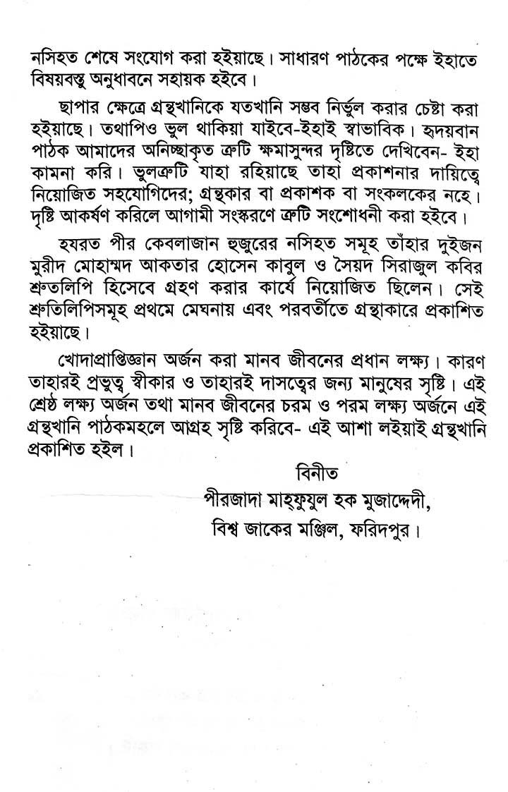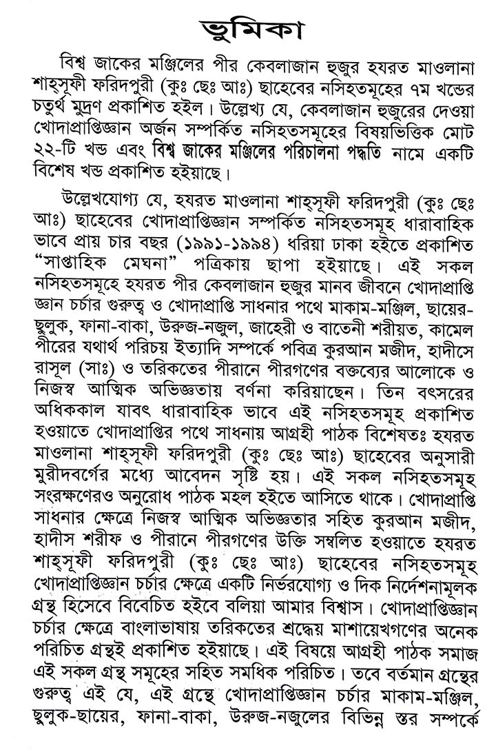 খোদাপ্রাপ্তি জ্ঞানের আলোকে শাহ্সুফী হযরত ফরিদপুরী (কুঃ ছেঃ আঃ) ছাহেবের নসিহত