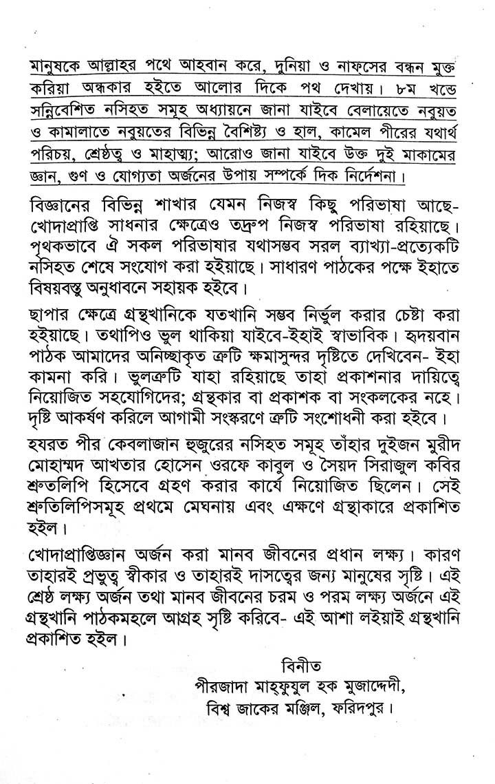 খোদাপ্রাপ্তি জ্ঞানের আলোকে শাহ্সুফী হযরত ফরিদপুরী (কুঃ ছেঃ আঃ) ছাহেবের নসিহত