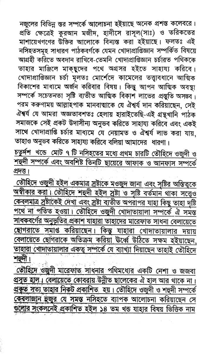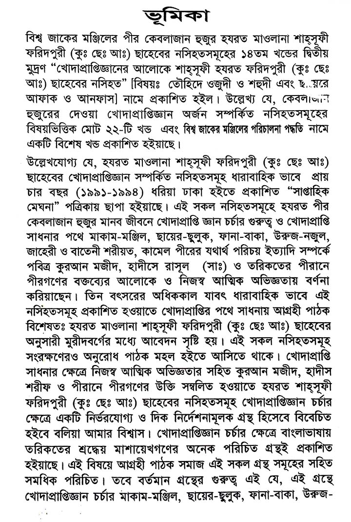 তৌহিদে ওজুদী ও শহুদী এবং ছায়েরে আফাক ও আনফাস – শাহ্সুফী হযরত ফরিদপুরী (কুঃ ছেঃ আঃ) ছাহেবের নসিহত (১৪)