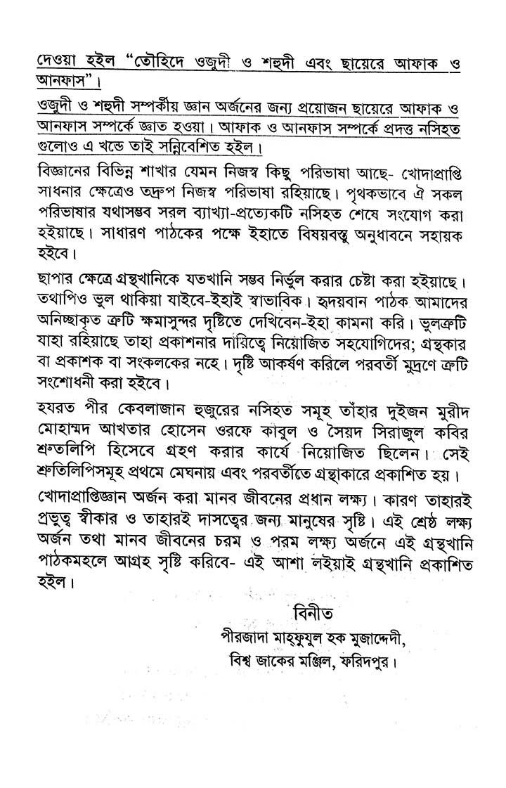 খোদাপ্রাপ্তি জ্ঞানের আলোকে শাহ্সুফী হযরত ফরিদপুরী (কুঃ ছেঃ আঃ) ছাহেবের নসিহত