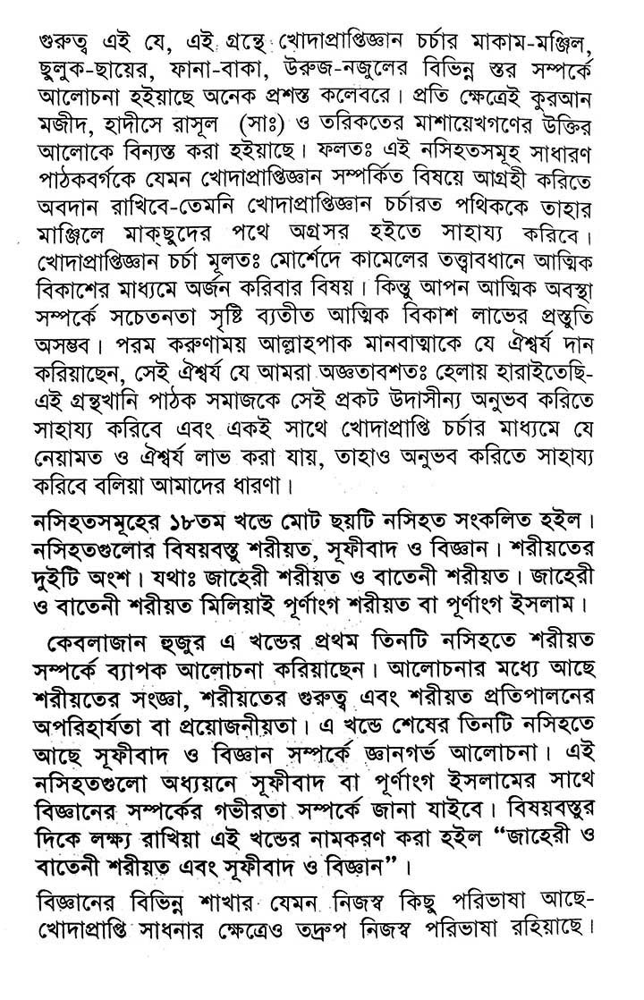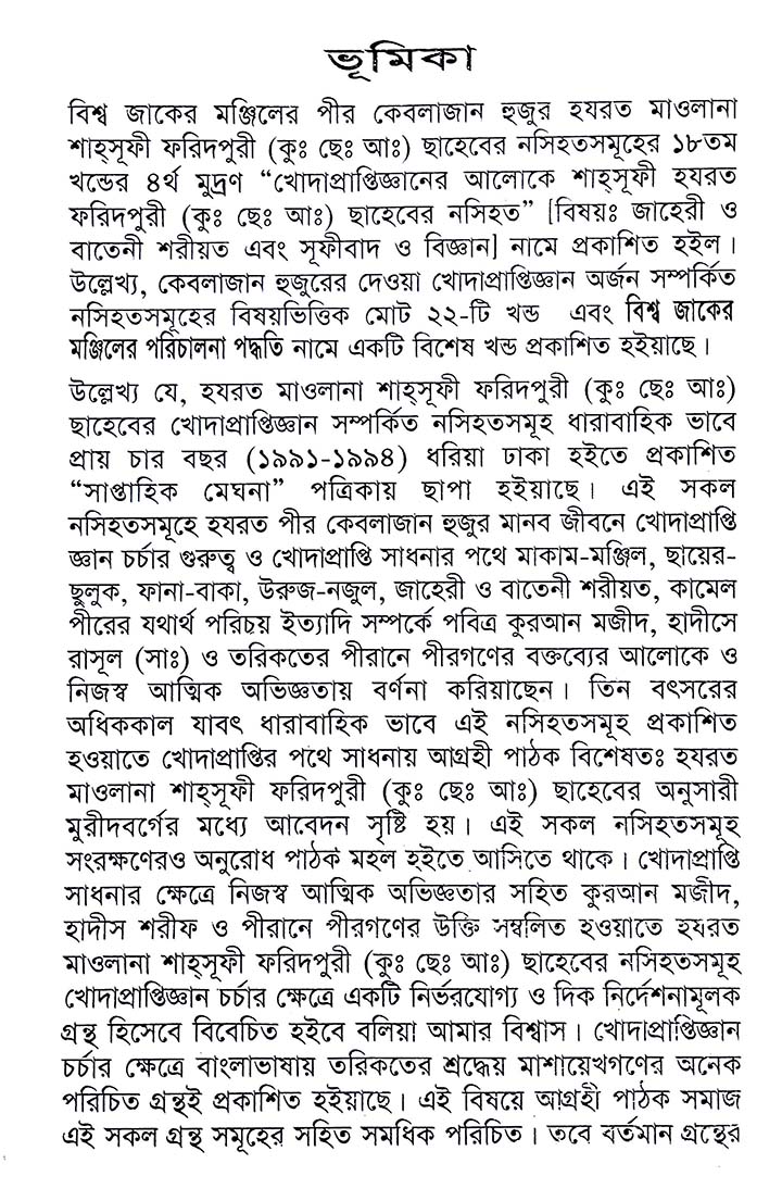 জাহেরী ও বাতেনী শরীয়ত এবং সূফীবাদ ও বিজ্ঞান – শাহ্সুফী হযরত ফরিদপুরী (কুঃ ছেঃ আঃ) ছাহেবের নসিহত (১৮)