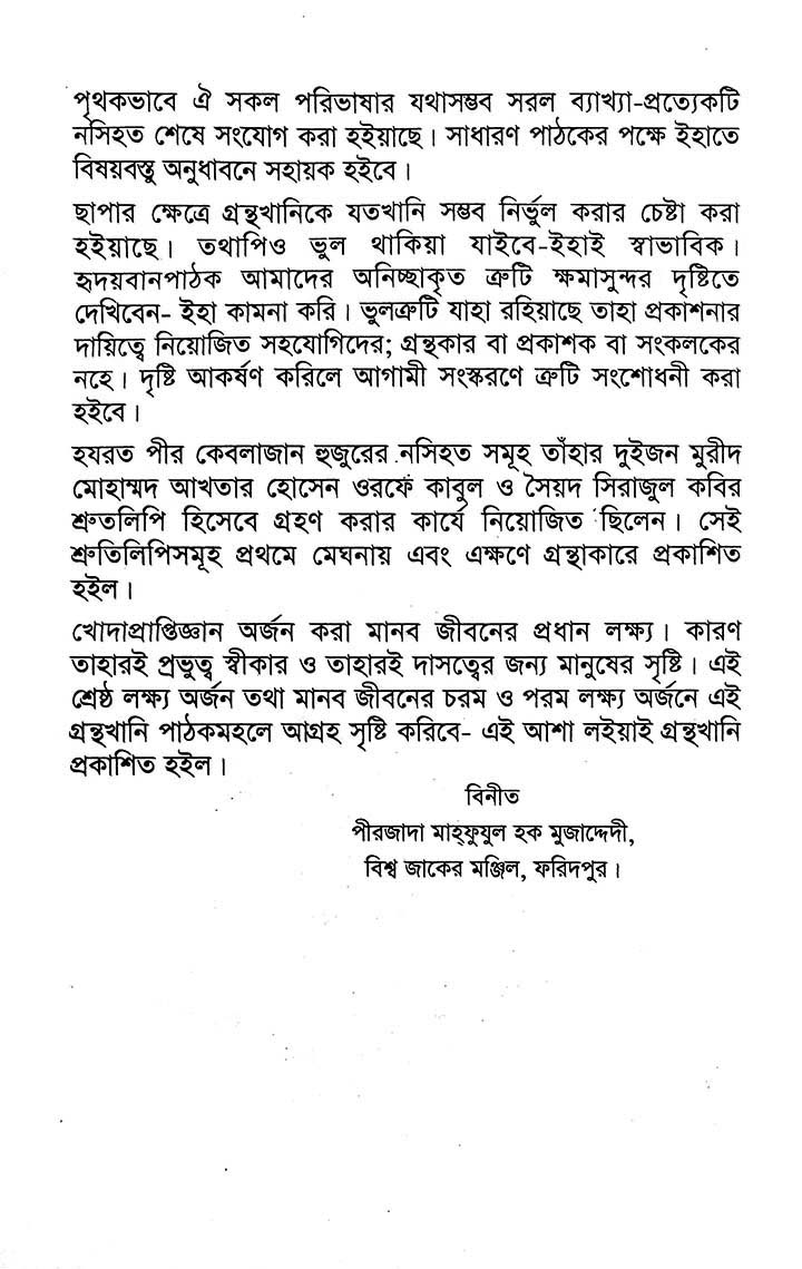 খোদাপ্রাপ্তি জ্ঞানের আলোকে শাহ্সুফী হযরত ফরিদপুরী (কুঃ ছেঃ আঃ) ছাহেবের নসিহত